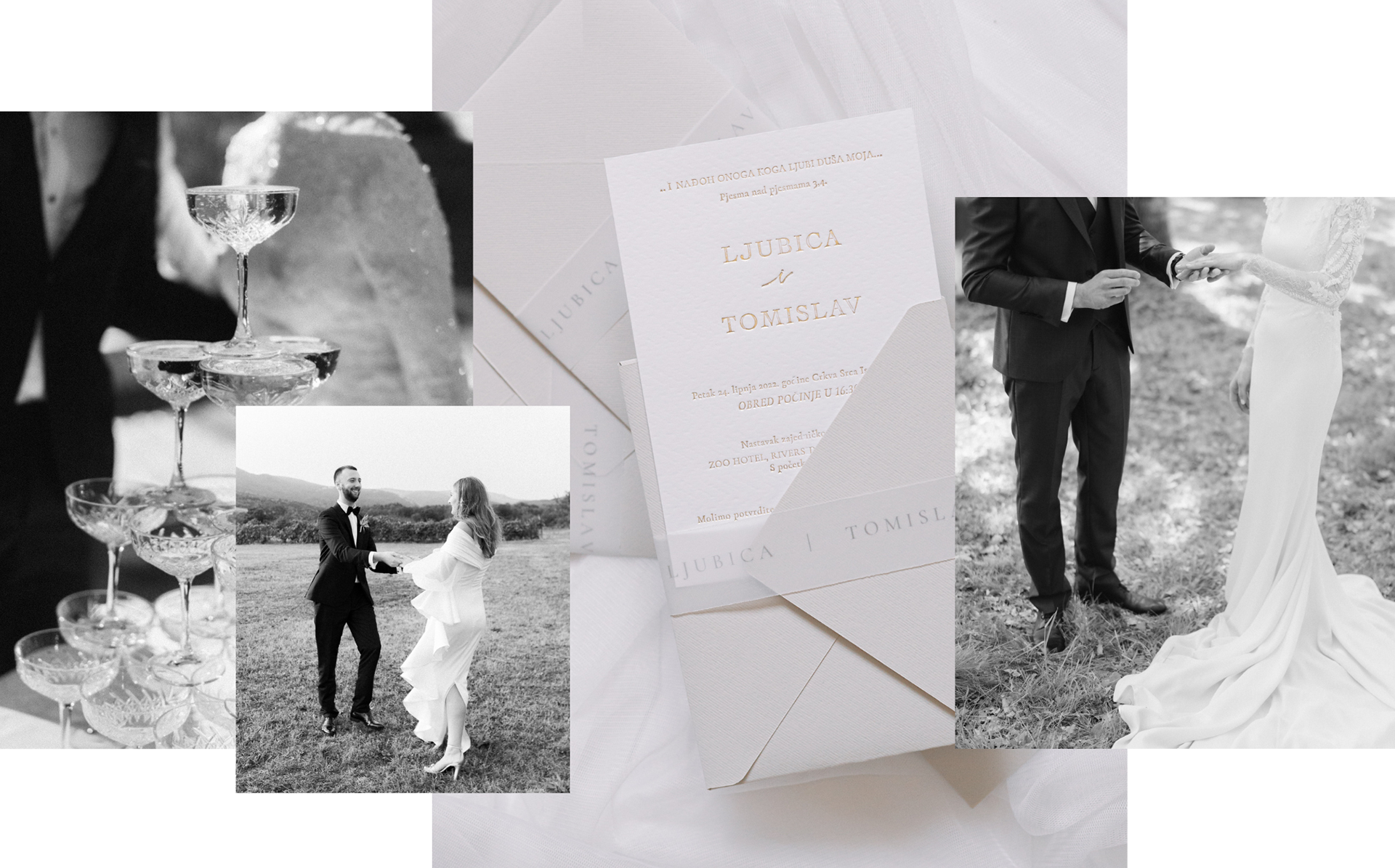 bazira se na želji da zabilježimo Vaše iskrene emocije, na elegantan i bezvremenski način s prirodnom ljepotom i kreiramo autentičnu priču koju ćete voljeti. Svaki par je jedinstven; način na koji se smijete, grlite, dodirujete i ljubite... vrlo osobno i čarobno. To je ono što nas vodi kod snimanja i zbog toga smo uvijek nestrpljivi s upoznavanjem te jedva čekamo čuti Vašu viziju.